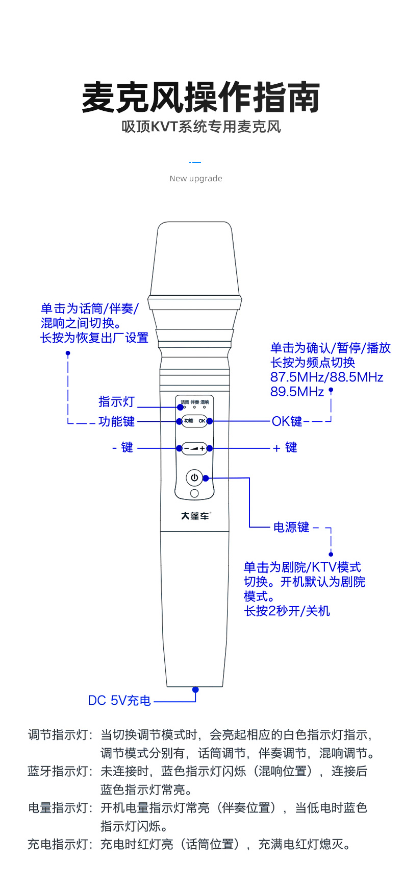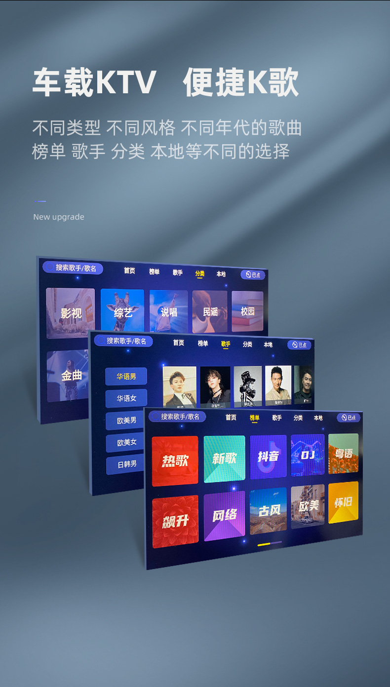 大蓬車KTV麥克風(fēng)可配合大蓬車吸頂電視、后排娛樂使用,在車上享受KTV的效果。