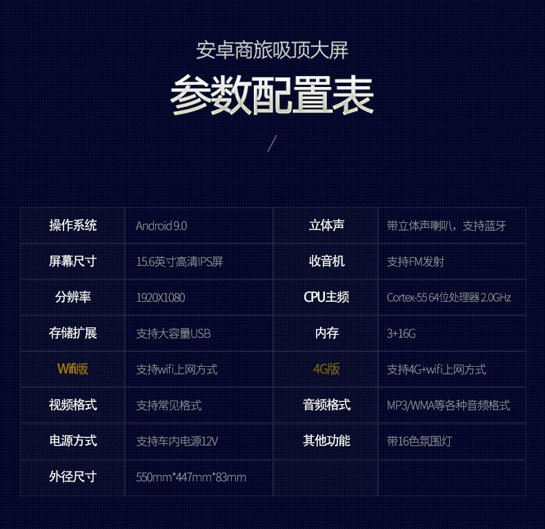 15.6寸傳祺M8專車專用吸頂電視(4G版)